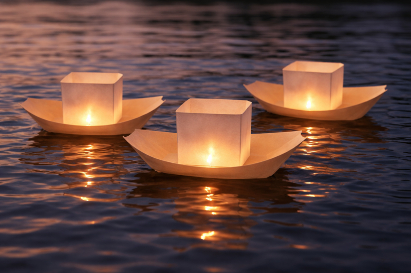 Voor herdenking of speciale gelegenheden hebben wij nu drijvende waterlantaarns als lichtjes voor op het water in voorraad. Dit zijn vierkante drijvende box lantaarns gemaakt van speciaal wax papier en bedoeld voor eenmalige verlichting. Bij elke box lantaarn wordt een waxinelichtje mee geleverd. Dit kun je in de papieren lantaarn plakken en aansteken als het donker wordt. Zo onstaat er een drijvend lichtje voor op het water. Hoe meer lantaarntjes je aansteekt des te mooier is het effect. De wind voert de verlichte lantaarns mee en dit levert een sprookjes achtig effect op.